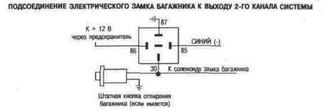 Управление выходом 2-го канала возможно только при снятой охране и выключенном зажигании. Это предотвратит случайное отпирание багажника во время движения.