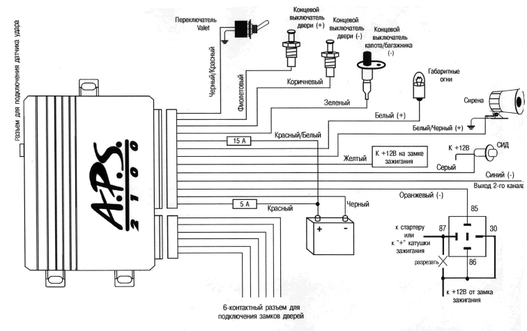 Поздравляем Вас с приобретением автосигнализации A.P.S. 2100! Данная система разработана и произведена с учетом пожеланий наших российских клиентов и отличается простотой и надежностью в эксплуатации (что достигается применением микропроцессора MicroChip индустриального типа), легкостью программирования (конфигурация системы сводит необходимость изменения настройки системы до минимума) и может быть установлена практически на любой тип автомобиля.